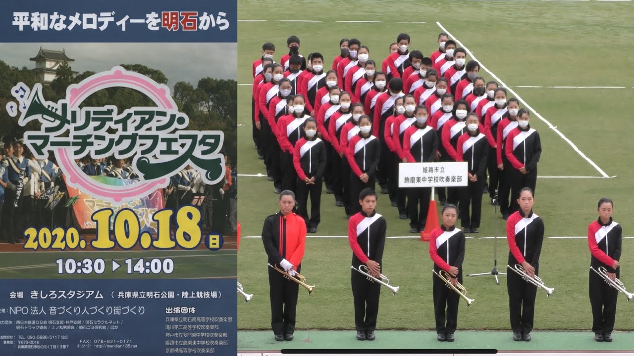Band participated in Meridian Marching Festa on October 18, 2020 at Kishiro Stadium, Akashi Park, Akashi, Hyōgo Prefecture (video above by MK KOBE). Event started with a field show followed by a parade. Parade route was rather innovative (see below), but no matter: this was the first (and also the last) parade of the band in 2020! References here and here, in Japanese. Eyewitness story is here, in Japanese. Another video on the field show is here. Very well edited summary video of the event is here. Entire event is in this video by TOMOYA KARAMATSU, with Tachibana entering at 1:03:33. Tachibana parade of that video is below:
