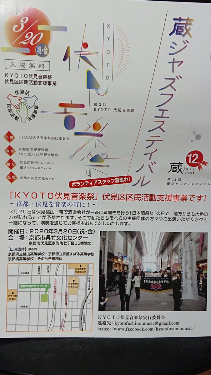 14:00 on March 20 、 KYOTO Fushimi Music Festival (Kura Jazz Festival) 、at Kyoto Kuretake Cultural Center